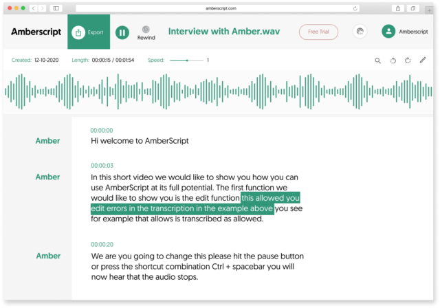 Easily transcribe audio to text with Amberscript. Our audio to text converters supports multiple audio and video file formats which you can use to create high quality subtitles and transcripts.