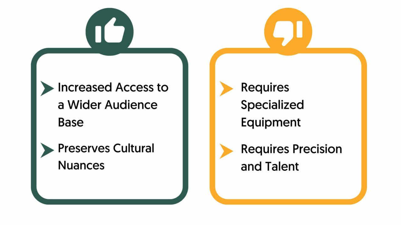 Similar to other techniques, lip-sync dubbing has its advantages and disadvantages. Let’s look at some of them.