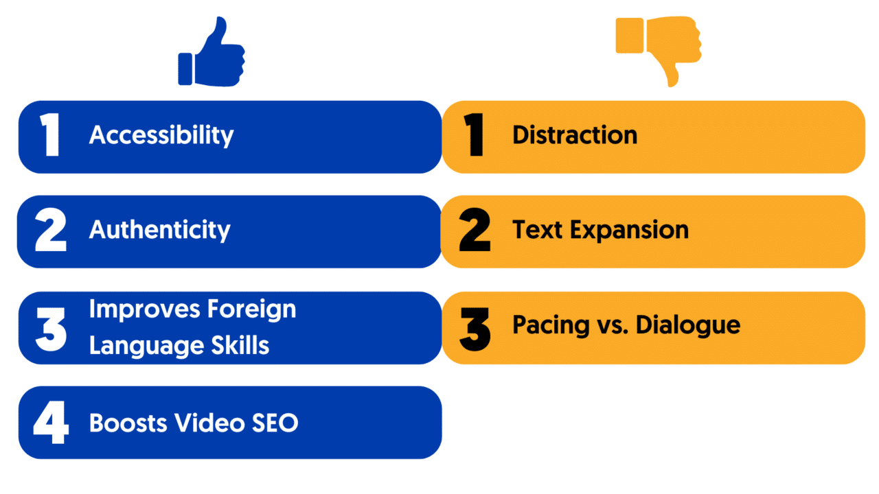 Inaccessibility: While dubbing makes it easier for those who can’t understand the original language to follow the video, it doesn’t assist those who can’t hear. Therefore, it does little to enable complete accessibility.