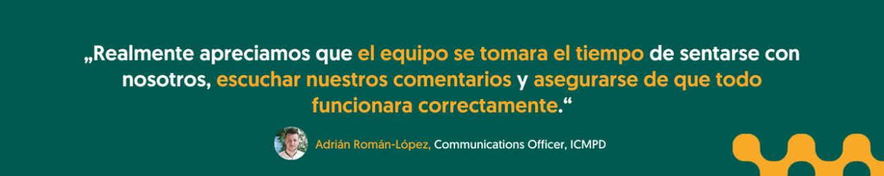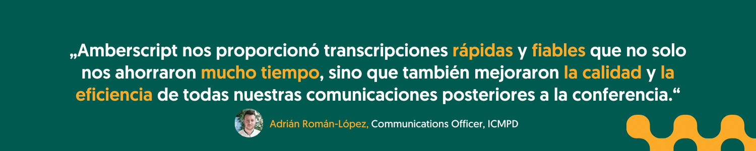 Al reflexionar sobre la colaboración, Adrián destacó cómo Amberscript se convirtió en una parte fiable del proceso postconferencia del ICMPD.