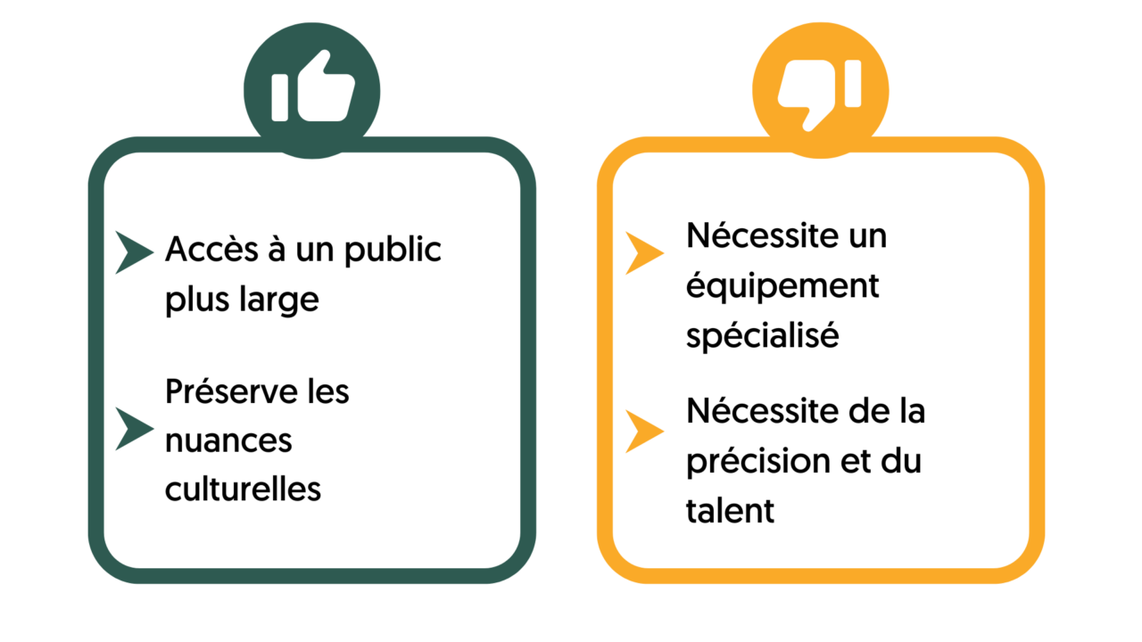 Comme toute chose, le doublage automatisé a ses avantages et ses inconvénients. Examinons-les rapidement.